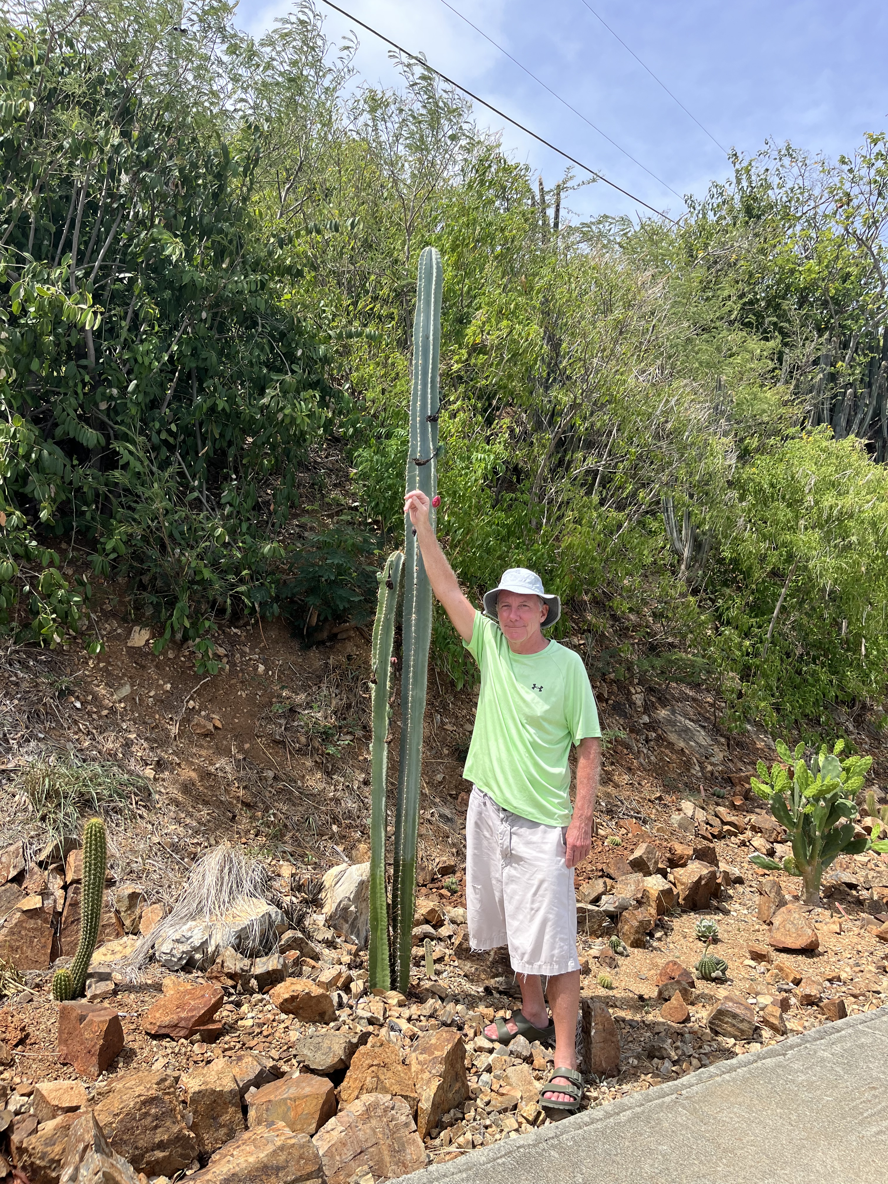 This handsome cactus has tall, columnar trunks and reaches heights of twenty feet, or more. It produces clusters of stout, cylindrical stems that resemble a pipe organ. The plant develops many arms during its lifetime and grows quicker with supplemental irrigation. It is deep green with ribs that have minor spines. Its central spine is yellowish and the smooth stems have five to seven ribs. The plant’s common name is derived from the fact that in many villages and towns of Mexico it is used to construct a living fence, mainly along roadways. In spring, the cactus produces tubular, pinkish-red flowers that are very showy. Following the bloom cycle, it develops spiny, yellowish to red fruit with black seeds. Use it as a desert accent or specimen; plant it against a tall wall, as a vertical accent, or create a living fence from cuttings of this plant. It also works well when used in desert or tropical settings and is relatively maintenance free. The Mexican fence post is native to the states of Hidalgo, Queretaro, and Guanajuato, and is widely planted and naturalized throughout Mexico.