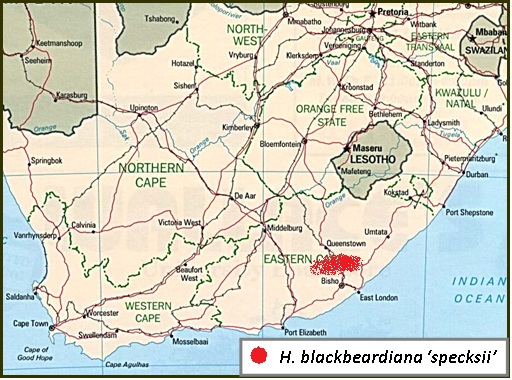 H. blackbeardiana ‘specksii’ distribution area is from Whittlesea down to Katberg and Thomas River. Cultivation is same as blackbeardiana, propagation should be done by seed or offsetts in case of offsetting clone